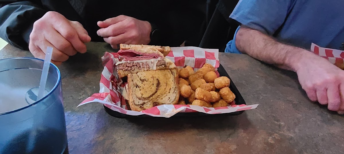 The friday fishfry was so good. Lightly breaded golden fish with choice of side. Plastic portion cups for the slaw and only barstools for seating made the atmosphere not match the service or food which were both top notch! I had the cheesy augratin potatoes and they were delish!